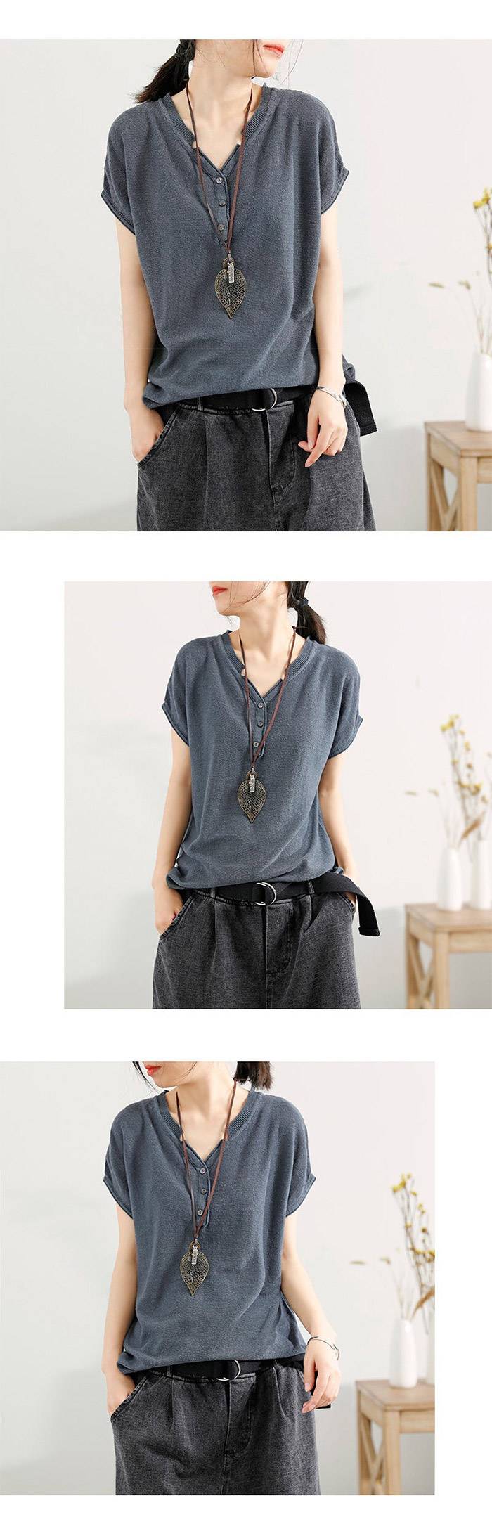 25分鐘前【夏季熱銷款】冰絲薄款V領短袖【超薄透氣】【舒適百搭】【促銷活動還在進行中哦!】 - 【活動促銷中】任選5件,均價NT$299/件